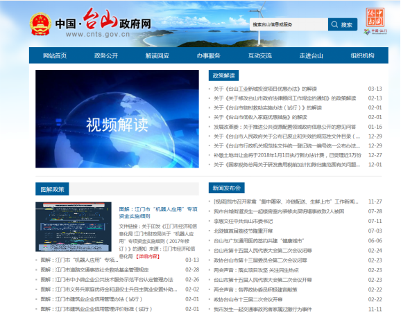 (二)進一步加強政府網建設。進一步加強“中國·臺山政府網”建設,做好遷入江門集約化平臺的技術對接等工作,完善網站功能,提供用戶體驗,將政府門戶網站打造成為信息公開透明、辦事服務便捷的一站式平臺。