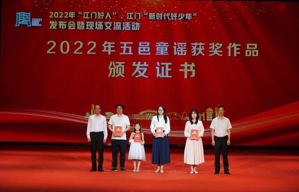 此次活動通過短片介紹、現場訪談、文藝表演等形式,講述了“江門好人”助人為樂、見義勇為、誠實守信、敬業奉獻、孝老愛親的感人事跡,同時展現了江門“新時代好少年”崇德向善、見賢思齊、“扣好人生第一粒扣子”的良好形象。活動還為江門獲評2022年第一、二季度“廣東好人”的先進模范,以及2022年五邑童謠征集傳唱活動的獲獎代表頒發證書。