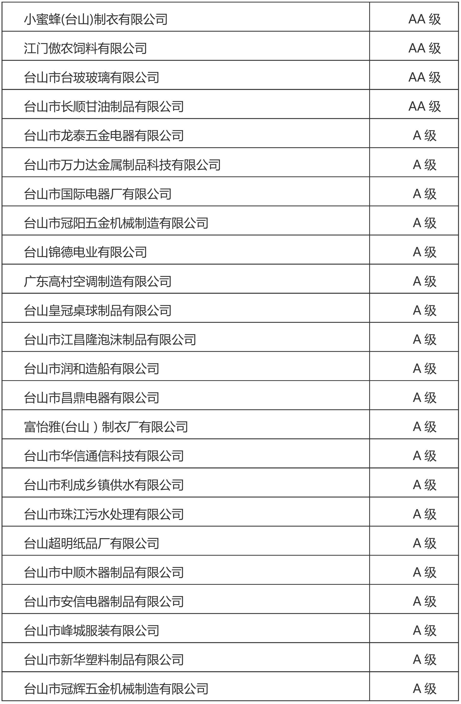 過去一年來,我市企業(yè)牢固樹立“誠信經營是企業(yè)發(fā)展的根本”的理念,不斷增強信用觀念和信用風險防范意識,涌現(xiàn)出一批誠信經營、信用記錄良好的誠信企業(yè)。根據《江門市人民政府關于實施誠信綠卡計劃推動骨干企業(yè)做大做強的意見(試行)》(江府〔2013〕22號,以下簡稱《意見》)、《江門市工業(yè)企業(yè)信用評價指標體系》,以及《江門市人民政府辦公室關于變更誠信綠卡企業(yè)信用級別的通知》(江府辦函〔2014〕228號)精神,我市開展了2017年度江門市誠信綠卡企業(yè)評價工作。經綜合評定,廣東科杰機械自動化有限公司等251家企業(yè)達到誠信綠卡AAA級企業(yè)標準,廣東四方威凱新材料有限公司等579家企業(yè)達到誠信綠卡AA級企業(yè)標準,永堅精機(江門)有限公司等501家企業(yè)達到誠信綠卡A級企業(yè)標準。經市人民政府同意,授予上述1331家企業(yè)“2017年度江門市誠信綠卡企業(yè)”稱號。