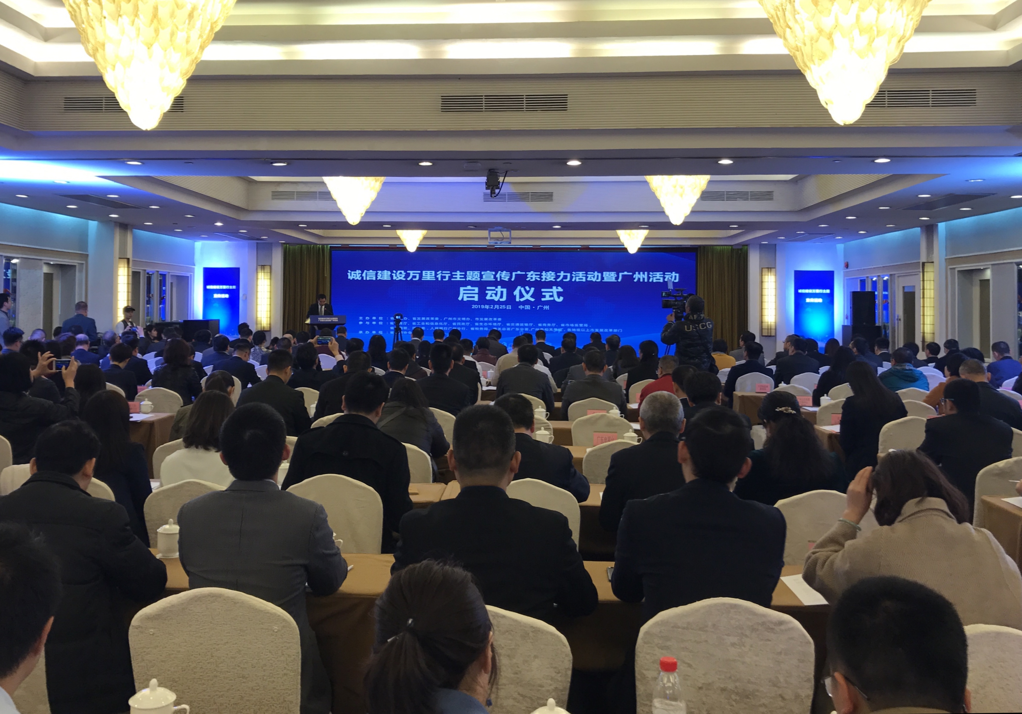 2月25日上午,由省文明辦、省發展改革委、廣州市文明辦和廣州市發展改革委主辦,省信用協會承辦的“誠信建設萬里行主題宣傳廣東接力活動暨廣州活動啟動儀式”在廣州舉行。省政府副秘書長魏宏廣,省有關單位負責同志,廣州市相關單位,全省各地級以上市發展改革部門負責同志,省有關行業協會負責人,企業家代表,新聞媒體記者等約180人參加活動。