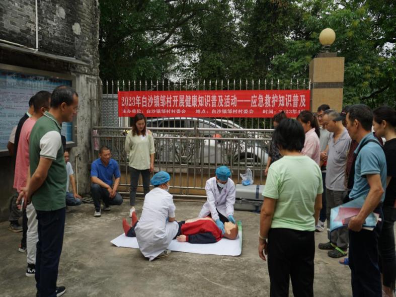 4月14日,白沙鎮特邀三八衛生院肖醫生在鄒村開展應急救護知識普及宣傳活動。在活動中,醫療志愿者現場授課,運用通俗易懂的理論知識以及器械演示等,為在座的村民群眾詳細講解了心肺復蘇、創傷救護、氣道梗阻急救措施等基本技能。隨后,肖醫生在現場進行了胸外按壓示范、心肺復蘇等有效的科學施救辦法。授課老師重點講解了“黃金4分鐘”對搶救成功的重要性和搶救方式,直觀地向大家展示遇到突發心搏驟停事件時的處置方式和手法。
