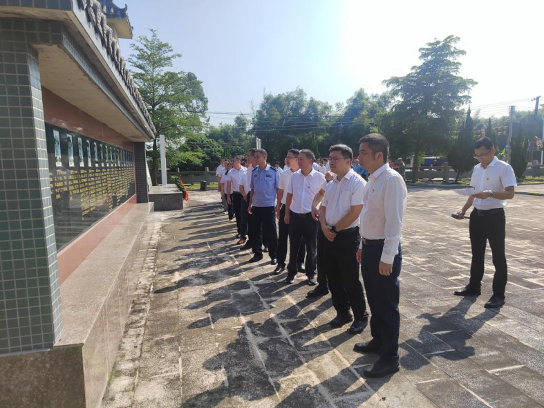 默哀結束后,伴隨著整齊的腳步聲,武裝部工作人員和村干部手托花圈,緩緩走向革命烈士紀念碑敬獻鮮花圈。鎮黨委書記黃仰東、鎮長姚樂貴、西村村黨總支書記黃國健、村委會副主任黃華勝上前仔細整理花籃緞帶,緞帶上“革命烈士永垂不朽”幾個大字格外耀眼,全場肅穆而立向紀念碑三鞠躬,表達人們對烈士的無限哀思和崇高敬意。