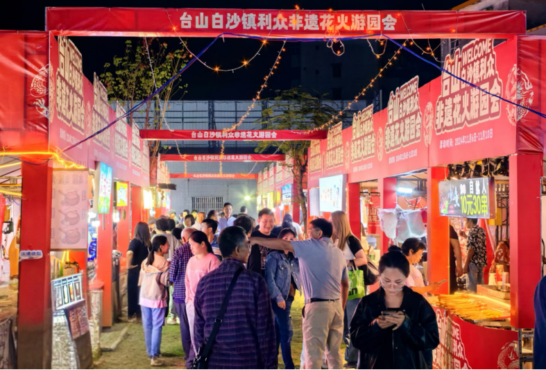 夜幕降臨,白沙鎮舊車站里璀璨的煙花瀑布點亮;火壺在空中翻騰跳躍,如同精靈般靈動;火棍舞動,劃出一道道耀眼的軌跡,現場的氛圍被推向高潮。“煙花瀑布表演太美了,我們一家人都很喜歡,很驚喜!”特意從開平過來“趕會”的張先生一家表示,這次來到白沙不僅品嘗到了本地特色美食,還看到了很多精彩的演出,度過了一段歡快的時光。