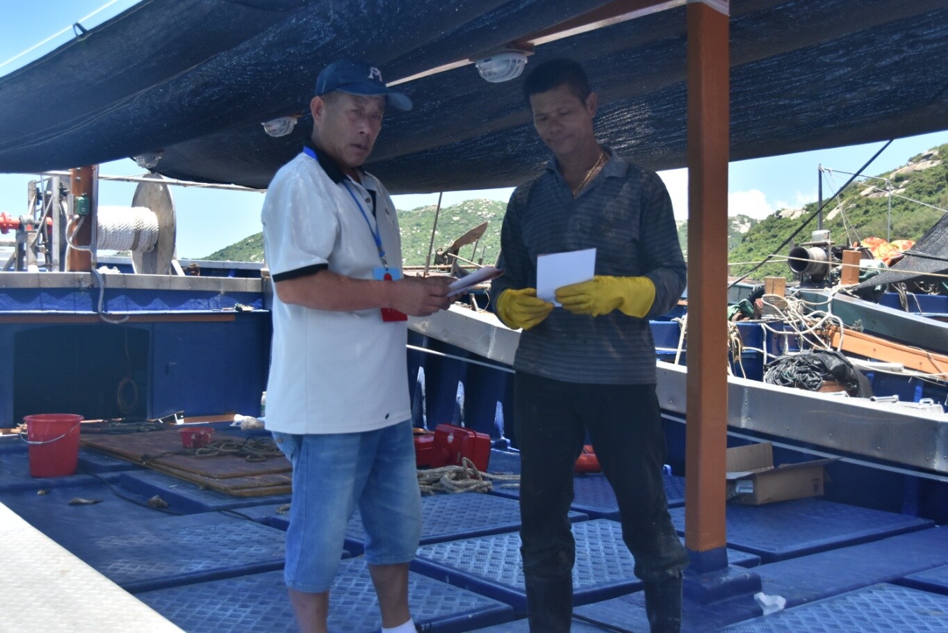 沙堤漁業村海上人大代表聯絡站駐站代表上漁船宣傳海洋環境保護知識