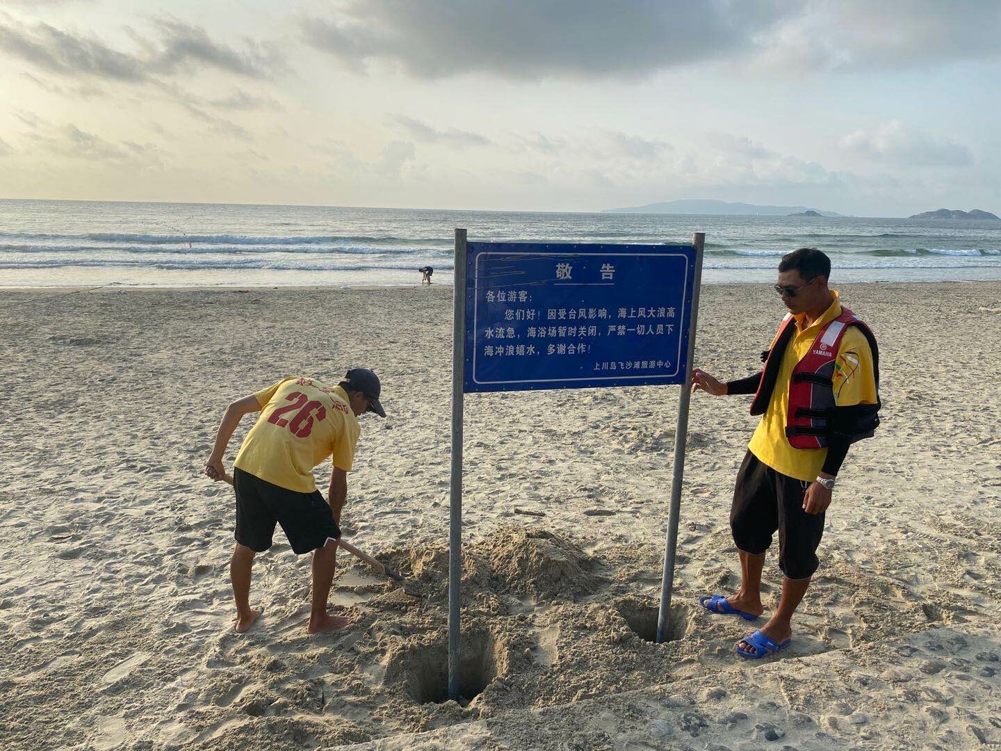 18日8時起,山咀港禁止游客過島,勸返前來游客,兩景區(qū)海濱浴場關(guān)閉,提示留島游客留在室內(nèi)活動。