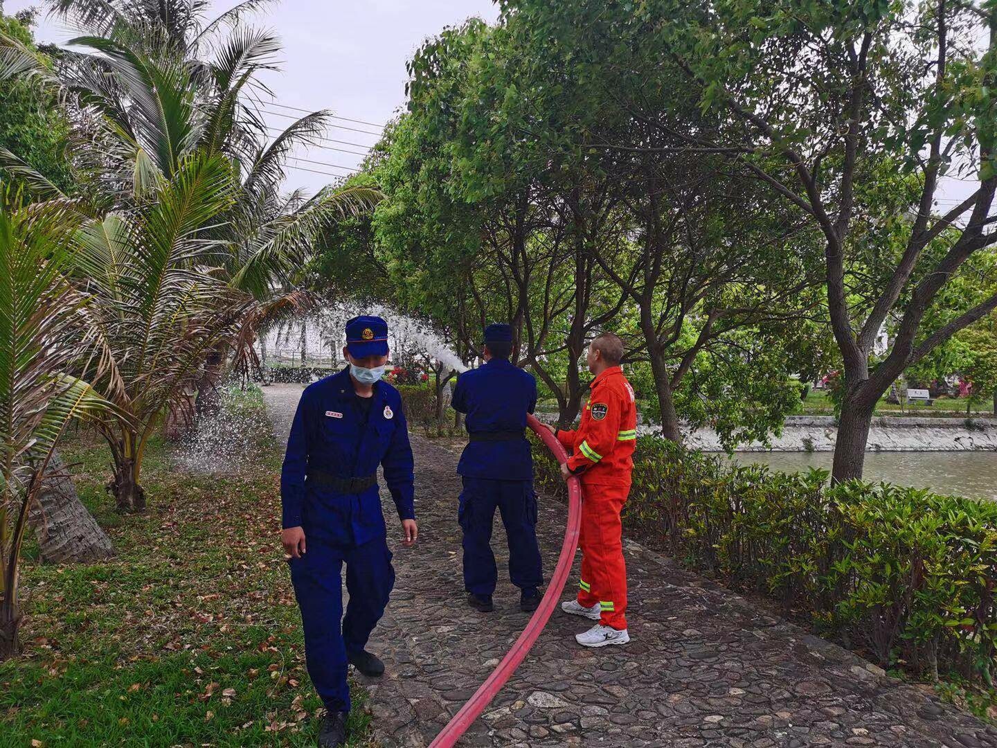 在演練過程中,消防員針對工作要點,詳細講解了滅火器的使用方法及消防水帶鋪設、出水等注意事項,并結合微型消防站的實際情況進行消防演練。