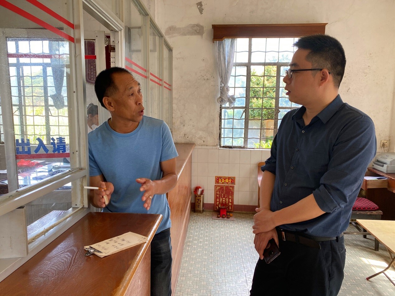 張新寶與糧所負責人溝通了解糧所情況并對糧食儲備方式提出意見