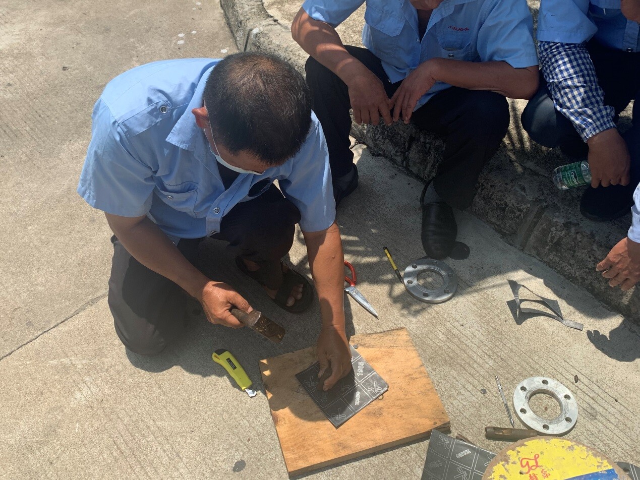 本次大賽分為甲板和輪機(jī)兩個(gè)部門(mén)開(kāi)展比試,甲板部和輪機(jī)部參賽船員分別比試了日常運(yùn)營(yíng)生產(chǎn)中所用到的打繩結(jié)、撇纜繩、制作法蘭墊片以及使用各種滅火器材等技能。