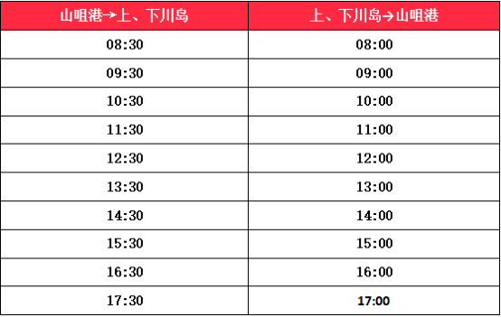 春節期間海上客運航班時間按正常航班開航,具體如下:
