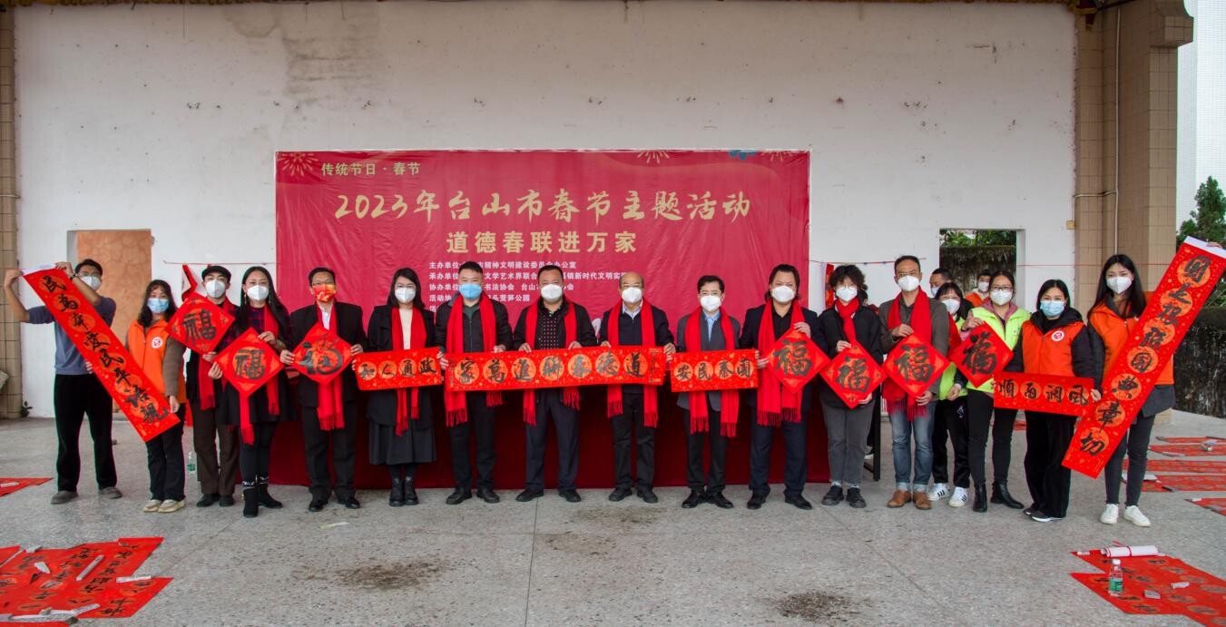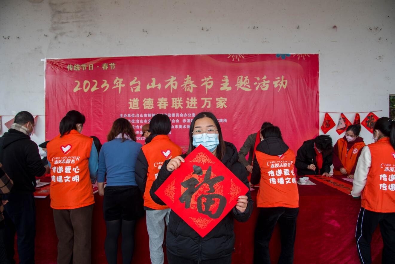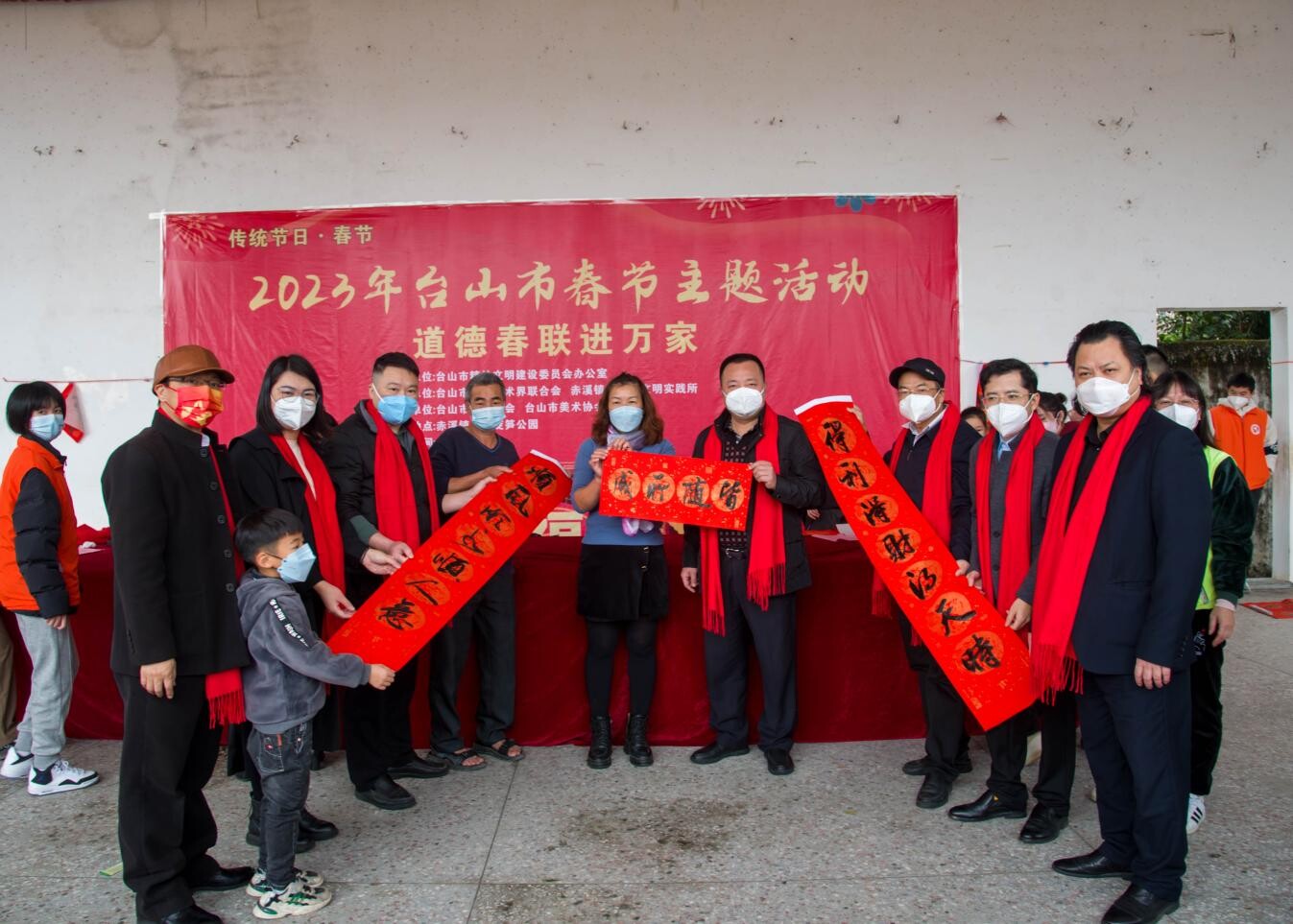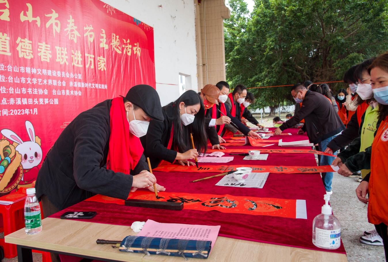 筆墨飄香,春聯(lián)送福。新春佳節(jié)來臨之際,為深入學(xué)習(xí)宣傳貫徹黨的二十大精神,弘揚(yáng)中華優(yōu)秀傳統(tǒng)文化,1月12日上午,臺(tái)山市文聯(lián)、赤溪鎮(zhèn)人民政府在赤溪鎮(zhèn)開展道德春聯(lián)進(jìn)萬家活動(dòng),為群眾送上飽含墨香的祝福。