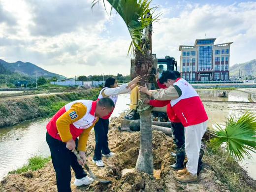 長安村“綠美赤溪我行動”主題植樹活動黨員志愿者栽種蒲葵樹苗