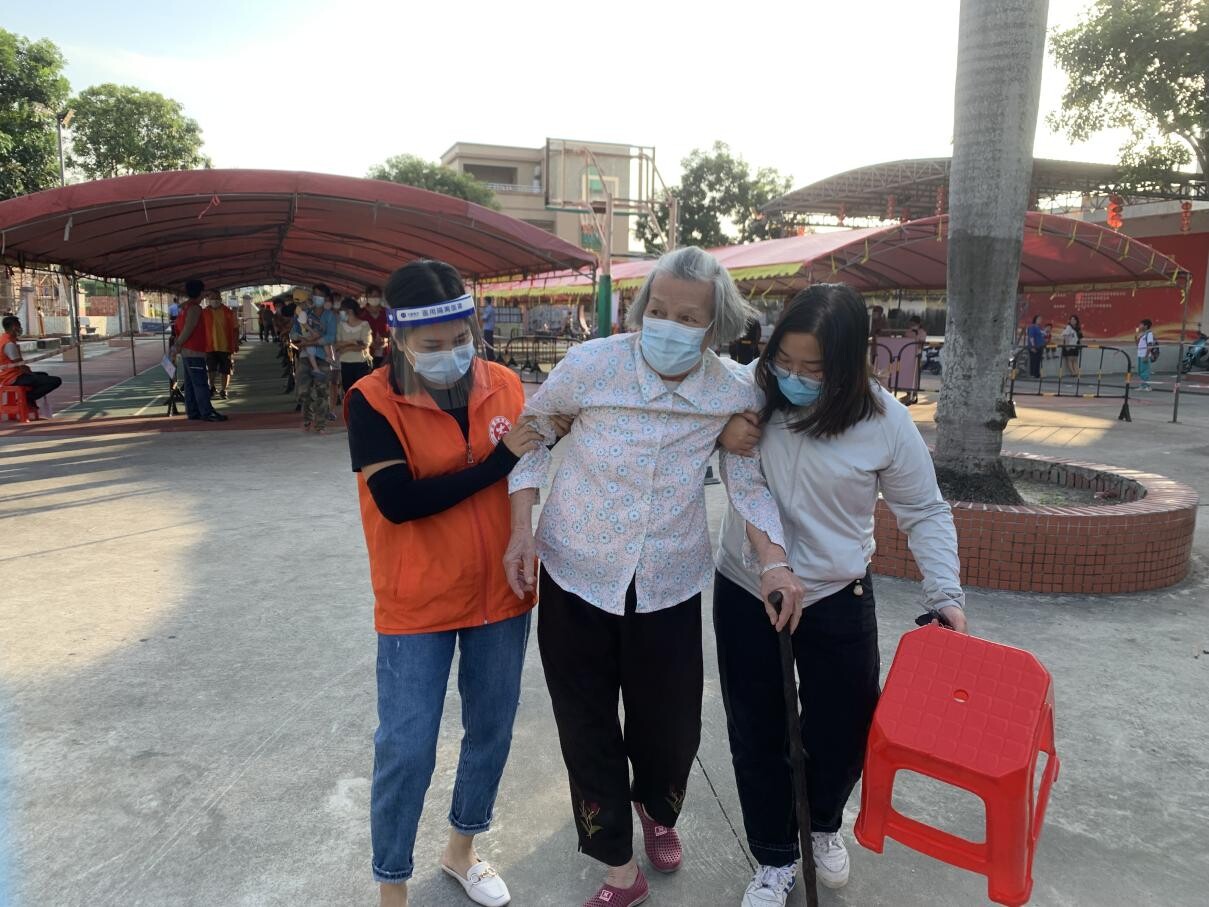 護嶺村委會采樣點設置了黨員先鋒崗,為前來采樣的群眾當好“服務員”,現場還為行動不便的群眾提供座椅并開通綠色通道,努力讓每一位群眾感受到關懷暖意。