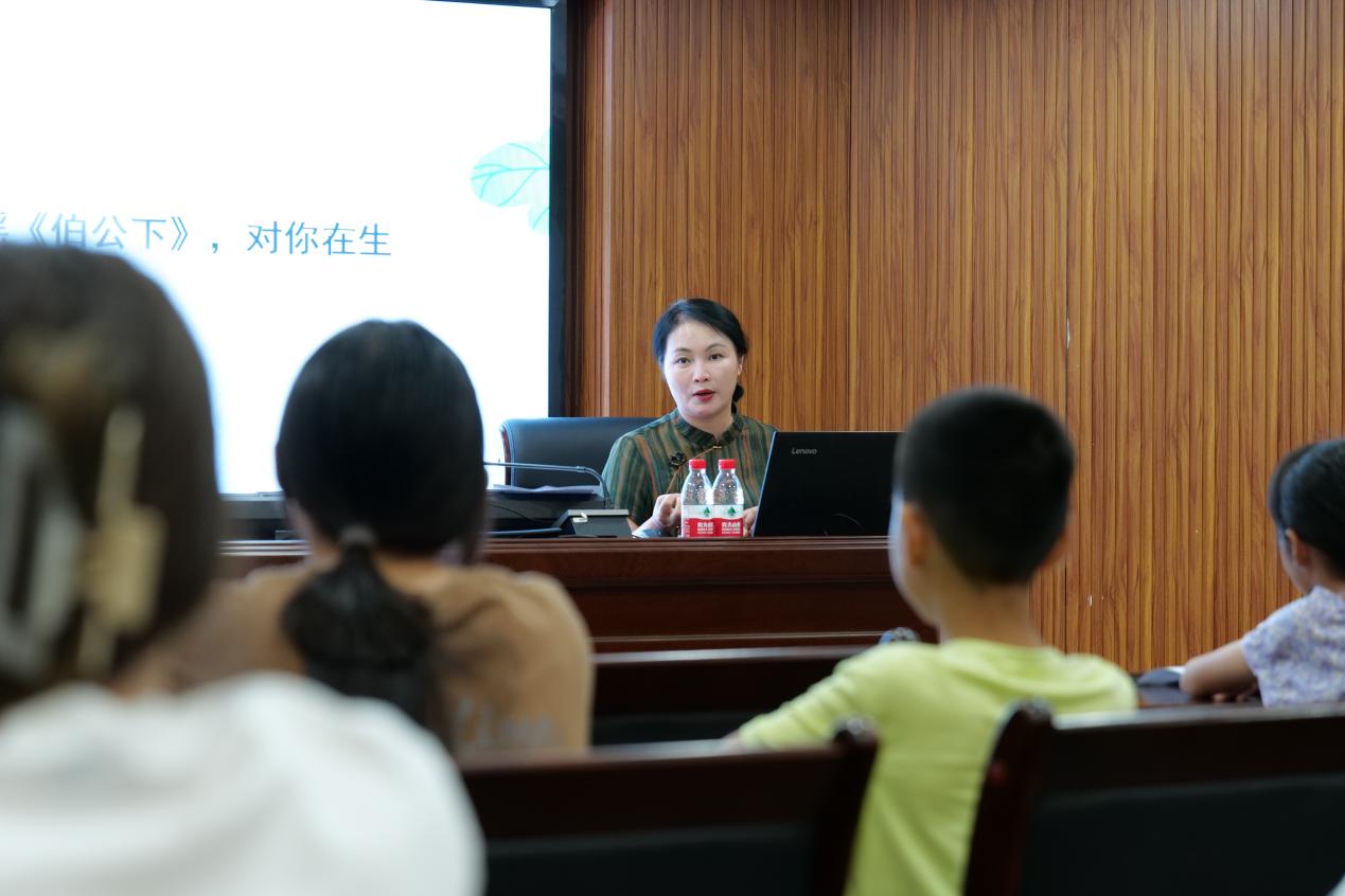 在結(jié)營課堂上,赤溪鎮(zhèn)邀請(qǐng)了廣東技術(shù)師范大學(xué)音樂學(xué)院副院長(zhǎng)陳菊芬現(xiàn)場(chǎng)教學(xué),主要圍繞客家歌謠《伯公下》開展授課。從腔調(diào)、感情等不同的角度教學(xué)演唱,呈現(xiàn)了客家先民們?cè)跓o數(shù)次種族遷徙中所經(jīng)受的苦難,以及他們的樂觀主義精神,引領(lǐng)學(xué)生們參與到客家童謠文化傳承中來,感受童謠的文字美、意境美、韻律美。同時(shí)囑咐學(xué)生們要尊重客家傳統(tǒng)文化、民俗文化,更好地了解客家人的傳統(tǒng)和歷史,增強(qiáng)文化自信和文化認(rèn)同感。