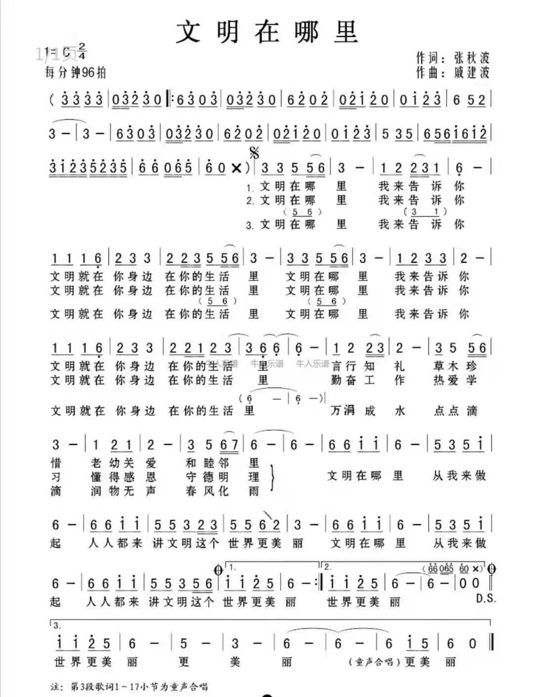 背景音樂(lè):《文明在哪里》(歌譜見(jiàn)附件)
