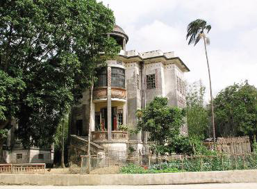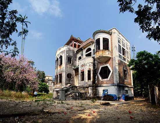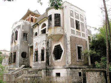 轉至第三層,凌空而出的一個半筒狀陽臺格外奪目,是早晨與黃昏眺望鄉(xiāng)村景色的好地方。樓頂坐落一個紅柱綠瓦的中國古式涼亭,入夜時分萬籟俱寂,若一家老少,歡聚亭中,共享天倫,真是樂也融融;若一人靜思,一壺清茶,一把古箏,月夜之下獨享幽寂高古之美,其情也馨。涼亭的設計,盡得中國古典文化內涵,使玉書樓華貴中透出高雅之氣,因此當?shù)厝藢⑵浞Q為劉備樓。