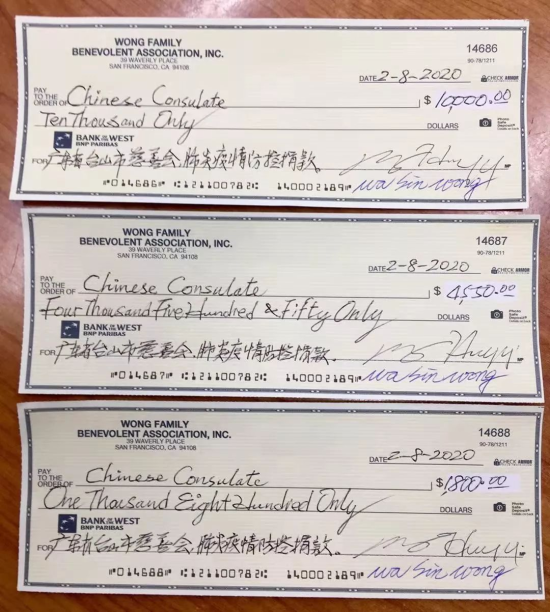 這次全美黃氏宗親總會共籌得16350美金,捐給臺山市慈善會,用于肺炎疫情防控。該會一直以來都十分重視和熱心公益慈善事業,汶川大地震、非典時期都秉持著大愛無疆、助人為樂的精神盡力地捐助受災人民渡過難關。