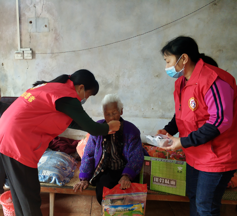 巾幗們?yōu)楣鹿牙先恕⒗щy婦女送去社會(huì)關(guān)愛