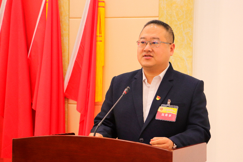 △鎮委委員、副鎮長黃春耀作《端芬鎮2020年民生實事項目完成情況報告》和《關于端芬鎮2021年民生實事候選項目的報告》