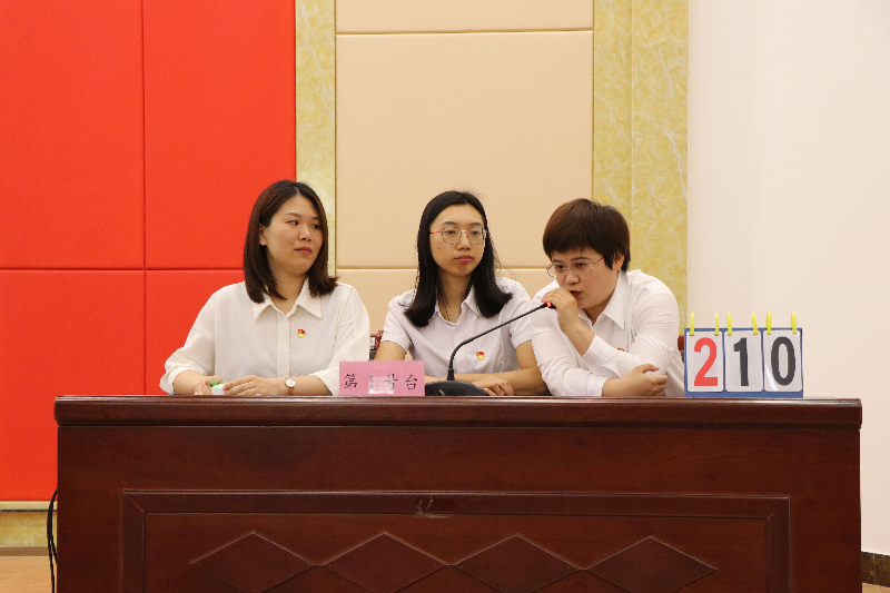 在第一輪的“步步為贏”必答題環節,選手們沉著應答,基礎知識都掌握得非常扎實,4支隊伍得分相近。在第二輪的“眼疾手快”搶答環節,各代表隊進入了激烈競爭的局面,大家眼疾手快、踴躍搶答,比分交替上升,各位選手以豐富的知識儲備和精彩的臨場發揮,贏得了現場觀眾的陣陣掌聲。在第三輪最緊張刺激的“挑戰自我”風險題環節中,各代表隊根據各自得分情況,發揮集體智慧,選擇不同分值的題目作答,整個過程高潮迭起,將現場氣氛推向頂點。