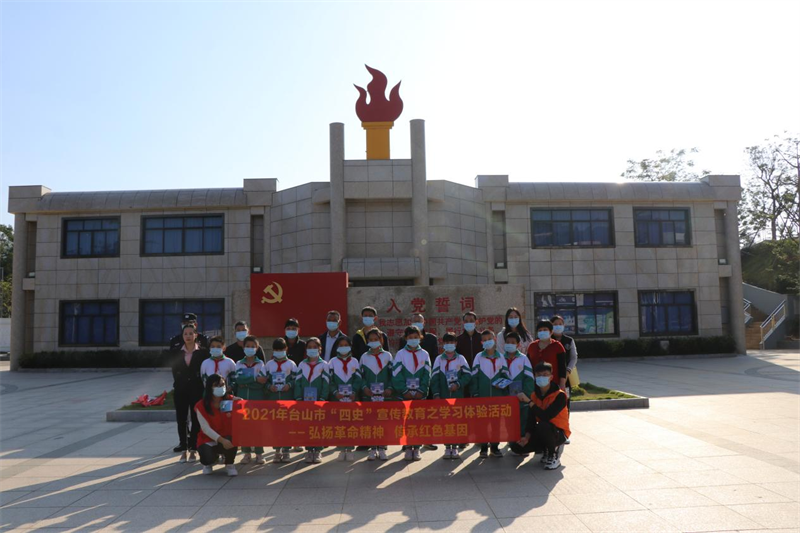 為大力弘揚革命傳統精神,以黨史學習教育推進未成年人思想道德建設走深走實,11月24日下午,中共臺山市委黨史學習教育領導小組辦公室、中共臺山市委宣傳部聯合臺山市端芬鎮人民政府,在臺山市端芬鎮濱海松苑(臺山市愛國教育基地)舉辦2021年臺山市“四史”宣傳教育之學習體驗——弘揚革命精神,傳承紅色基因講解活動。