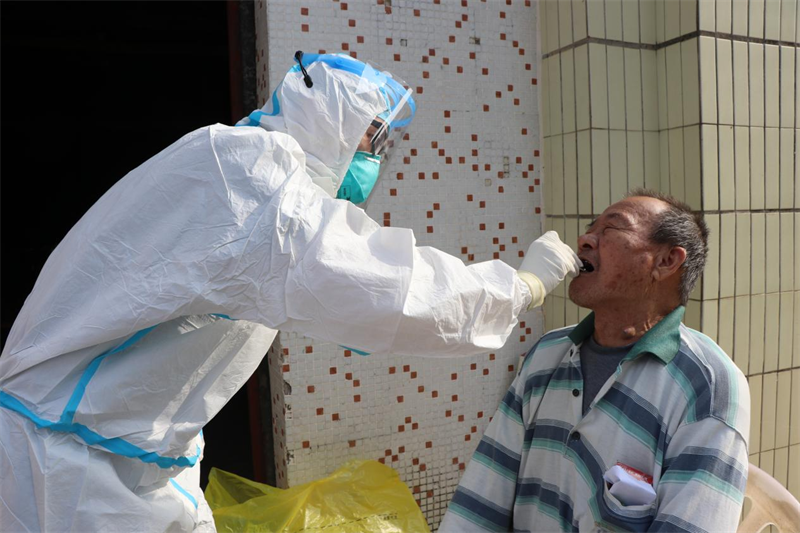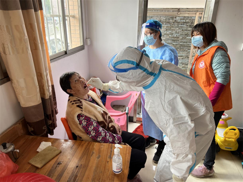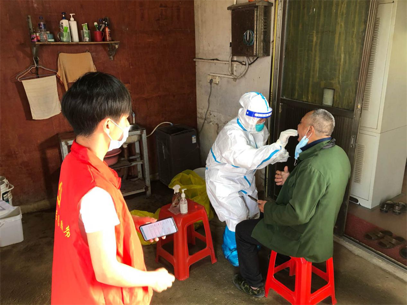 醫護人員、志愿者上門為行動不便的群眾進行核酸檢測