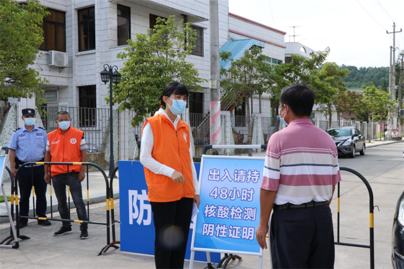 下午3時(shí),演練拉開帷幕。本次演練以“從外市自駕車回鄉(xiāng)的張某核酸初篩陽(yáng)性,現(xiàn)居住在端芬鎮(zhèn)西廓村委會(huì)龍華村”為背景。從發(fā)現(xiàn)與啟動(dòng)、風(fēng)險(xiǎn)管控、消殺、流調(diào)、核酸檢測(cè)、密接排查轉(zhuǎn)運(yùn)、物資保供、發(fā)布信息、解封解控等多個(gè)場(chǎng)景開展演練:在接到通報(bào)后,端芬鎮(zhèn)防控指揮部立即啟動(dòng)應(yīng)急預(yù)案,按照“提級(jí)管控、屬地處置”原則迅速啟動(dòng)戰(zhàn)時(shí)指揮體系,提級(jí)靠前指揮,鎮(zhèn)主要領(lǐng)導(dǎo)立即趕往西廓村,在西廓村成立現(xiàn)場(chǎng)指揮部;流調(diào)溯源組與市疾控中心、公安局流調(diào)人員開展流行病學(xué)調(diào)查;社會(huì)管控組、農(nóng)村管控組、社區(qū)管控組、交通管控組進(jìn)行現(xiàn)場(chǎng)管控、設(shè)置工作點(diǎn)位、設(shè)置管控卡;密接管理組、重點(diǎn)人員轉(zhuǎn)運(yùn)組轉(zhuǎn)運(yùn)陽(yáng)性病例、密接者、次密接者;監(jiān)測(cè)與消毒組進(jìn)行終末消毒和轉(zhuǎn)運(yùn)車輛消殺;物資保障組對(duì)封控、管控區(qū)域住戶做好物資保障;醫(yī)療救治組對(duì)封控管控區(qū)域居民發(fā)生特殊情況進(jìn)行應(yīng)急處置;物資保障組、綜合協(xié)調(diào)組匯報(bào)情況生活物資保障供應(yīng)工作情況;核酸檢測(cè)組對(duì)封控區(qū)和管控區(qū)進(jìn)行大規(guī)模核酸篩查;宣傳信息組做好防控知識(shí)宣傳和信息發(fā)布。
