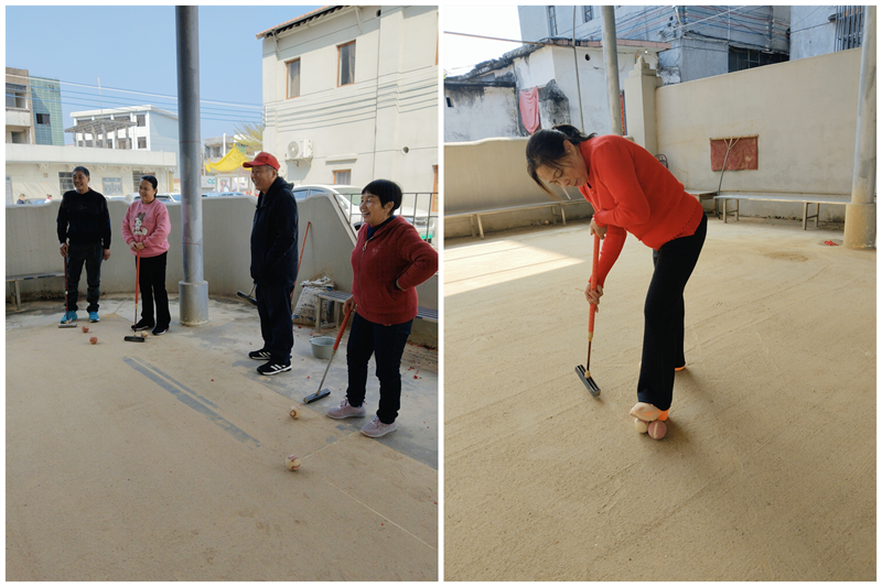 門球比賽場上氣氛熱烈,運動員們個個精神抖擻,神采飛揚,只見他們手握球錘,彎腰擊球,揮桿過門,一系列的動作下來或氣定神閑、或矯健瀟灑,充分展現了參賽群眾的活力和昂揚向上的精神風貌。