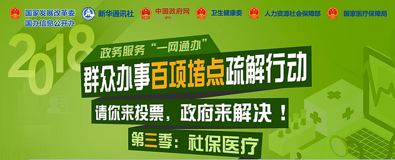 7月6日起,國家發(fā)展改革委、國辦信息公開辦、新華社、中國政府網(wǎng)、衛(wèi)生健康委、人力資源社會(huì)保障部、醫(yī)療保障局等7部門和單位聯(lián)合發(fā)起第三季堵點(diǎn)問題征集活動(dòng),聚焦社保醫(yī)療領(lǐng)域辦事堵點(diǎn)問題。請(qǐng)結(jié)合自身所遇到的涉及看病就醫(yī)、養(yǎng)老金認(rèn)證、報(bào)銷生育相關(guān)費(fèi)用等經(jīng)歷參與投票。所征集的信息經(jīng)大數(shù)據(jù)分析后,我們將選擇群眾反映最強(qiáng)烈的20個(gè)“堵點(diǎn)”問題,推動(dòng)有關(guān)地方、部門限時(shí)解決。