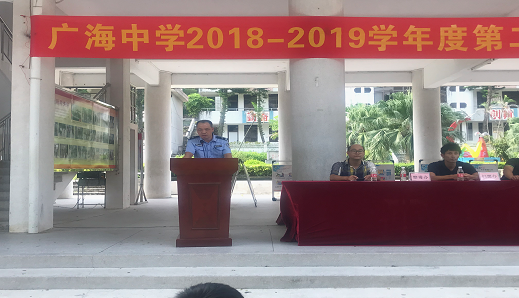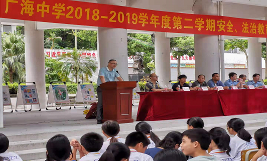 活動由中學副校長李灝宏主持。交警中隊隊長李寶華首先向師生們講解交通安全知識。結合典型的交通事故案例,他語重心長指出,交通安全大過天,暑假來臨之際,同學們更要自覺遵守交通規則,不闖紅燈、不橫穿馬路,不乘坐無證照、違章超載的車輛,更不能在公路上玩耍或追逐打鬧,以防發生交通安全事故。廣能律師事務所律師羅純鋼則針對當前校園安全的突出問題,用生動的案例、深刻的教訓,警示學生要遵紀守法,不要做讓個人后悔、家庭蒙羞、社會不安的糊涂事情,教育廣大學生充分珍惜讀書時光,努力學習回報家庭及社會。最后,派出所干警佘翰文普及禁毒和掃黑除惡基本知識。他提出,毒品和黑惡勢力可能就隱藏在身邊,學生們要善于提高警覺戒備意識,謹慎交友,增強辨別是非和自我保護的能力,自覺抵制各種不良行為以及違法犯罪行為的引誘和侵害,做新時代的好少年。