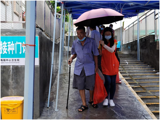 三、宣傳發(fā)動(dòng),暖心服務(wù)。為更好更快推進(jìn)疫苗接種工作,廣海鎮(zhèn)推出多項(xiàng)措施:一是提前通知。充分利用短信平臺(tái)、派發(fā)傳單、微信朋友圈、電話提前聯(lián)系告知群眾接種時(shí)間、注意事項(xiàng),避免群眾錯(cuò)過(guò)接種時(shí)間。二是免費(fèi)接送。在鎮(zhèn)域內(nèi)4臺(tái)專(zhuān)車(chē)免費(fèi)接送打疫苗群眾,在用車(chē)緊張時(shí)段,鎮(zhèn)村干部更是提供私家車(chē)接送服務(wù),保障群眾順利出行接種。考慮到外出務(wù)工鄉(xiāng)親在城市預(yù)約接種等待時(shí)間較長(zhǎng)的問(wèn)題,廣海鎮(zhèn)鼓勵(lì)外出務(wù)工鄉(xiāng)親回鄉(xiāng)接種,并為7月30日至31日在廣海衛(wèi)生院接種的群眾報(bào)銷(xiāo)來(lái)回程車(chē)費(fèi)。三是激勵(lì)發(fā)動(dòng)。廣海鎮(zhèn)積極聯(lián)系發(fā)動(dòng)商超,在熱心商家的支持下推出激勵(lì)措施,凡是7月30日至31日到廣海衛(wèi)生院接種的群眾可領(lǐng)取雞蛋一份,政企合力同心推進(jìn)防疫工作。四是貼心關(guān)懷。廣海鎮(zhèn)充分考慮近期天氣因素,預(yù)先在廣海中心衛(wèi)生院等候區(qū)搭起帳篷,配備凳子和冷風(fēng)扇,志愿者堅(jiān)守崗位維持秩序,耐心協(xié)助群眾填寫(xiě)表格,引導(dǎo)群眾有序接種,并為等候接種的群眾提供茶水、點(diǎn)心。