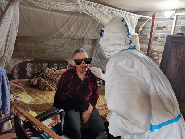 (醫(yī)護(hù)人員上門(mén)為行動(dòng)不便的老人家做核酸檢測(cè))