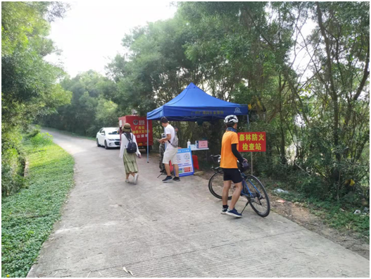 由于廣海今年雨水較少、天氣酷熱,天干物燥,火險指數高,加之海龍灣風車山由于風景優美,近年來成為小有名氣的“網紅”景點,每逢節假日慕名而來的游客絡繹不絕,為杜絕森林火災等安全事故發生,廣海鎮在海龍灣風車山上山處設置森林防火檢查點,安排干部落實防疫登記、檢查是否攜帶火種、勸導游客文明安全出游,同時組織護林員到各重點區域進行巡查,確保無安全事故發生。