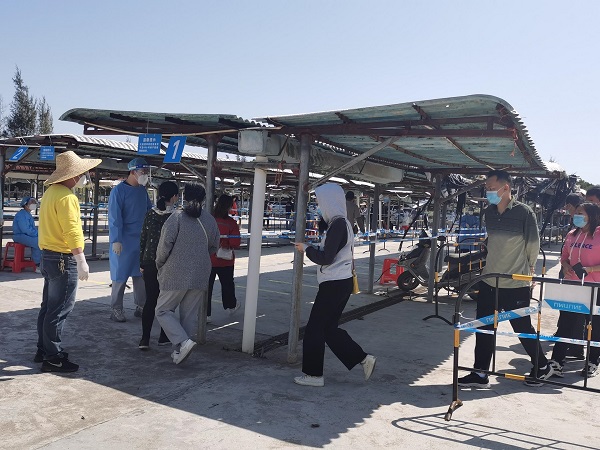 廣海鎮是著名的漁業鎮,有許多居民以捕魚為生。然而海上作業是疫情防控的重難點之一,為筑牢廣海鎮防疫屏障,避免從事捕撈行業人員從海上攜回病毒,鎮委、鎮政府長期在廣海鎮鯤鵬冰廠和和貴冰廠兩處漁民上下船重點地區安排工作人員進行值班登記。工作人員為上下船人員進行掃碼測溫,嚴格檢查上下船人員核酸檢測和疫苗接種情況,同時進行信息登記,確保有源可溯、有跡可循。