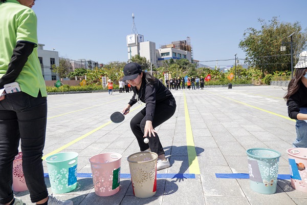 活動開始前,由志愿者代表向大家講解“垃圾分類”的重要意義和經驗做法,然后介紹了比賽項目和比賽規則,為整場活動做了賽前動員。比賽項目包括“送垃圾寶寶回家”乒乓球接力比賽、“環境保護人人有責”二人三足環節、“認真聽聽環保歌”搶凳子,在游戲中融入環保元素,在活動中學習分類知識。