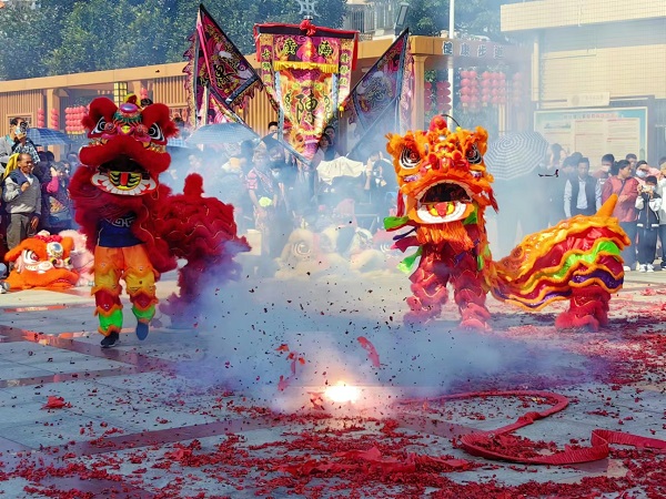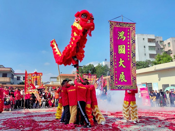 在南門頭、北門頭,醒獅隊伍賀門樓,祝愿廣海新的一年運勢昌隆、風調雨順、國泰民安!