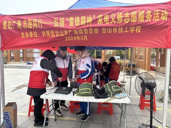 在學雷鋒日即將到來之際,3月1日早上,共青團臺山市廣海鎮委員會吹響志愿行動的號角,邀請共青團臺山市技工學校委員會、臺山市技工學校師生代表,在廣海鎮文化廣場舉辦弘揚“雷鋒精神”家電義修志愿服務活動。
