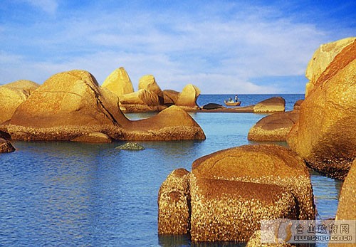 海宴鎮蓬島位于海宴鎮東南沿海,靠近廣東西部沿海高速公路,與上下川島隔海相望。這里風景秀麗、碧海藍天、奇石林立,近5公里長的沙灘色澤潤白,沙質細嫩、金黃無瑕,平坦柔軟,寬度達100米,還有100多米寬的馬尾松綠化帶。樹影婆娑,濤聲拍岸,一派亞熱帶南國風光。主要景點有:天然海灘、天然石室、仙石奇洞、石安古奇榕樹、石刻巨書、晚歸漁舟。