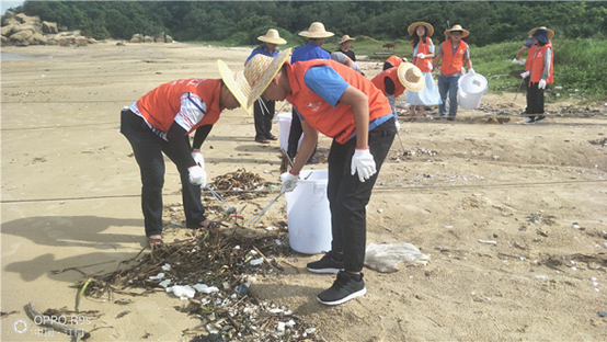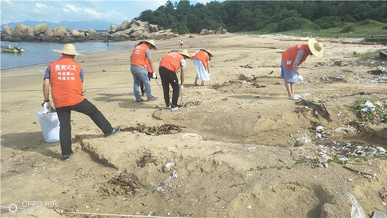 到達海灘后,環保義工組迅速有序地對海灘分區域進行垃圾清理收集。經過2個多小時的清理,蓬島沙灘的生態面貌得到極大改善。
