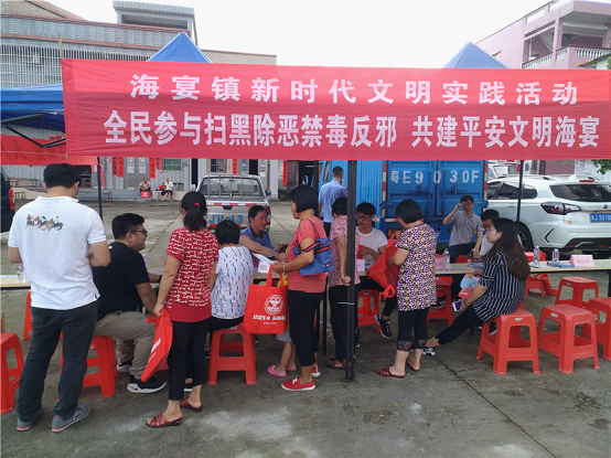 為推動我鎮掃黑除惡專項斗爭向縱深發展,擴大掃黑除惡專項斗爭的宣傳覆蓋面及紀念林則徐虎門銷煙,營造全民禁毒氛圍,6月4日,鎮綜治辦聯合鎮掃黑辦、鎮禁毒辦、海宴派出所、海宴司法所到聯和村那馬市場開展掃黑除惡專項斗爭、禁毒、反邪教宣傳活動。