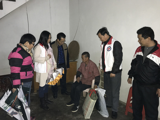 1月8日下午,市紅十字會常務副會長岑衛婷帶隊到三合鎮慰問困難群眾,為貧困戶送去了御冬物品和慰問金,讓貧困戶切實感受到黨的溫暖與關懷。鎮委委員伍紅衛、鎮衛計局局長伍艷梨等陪同前往。