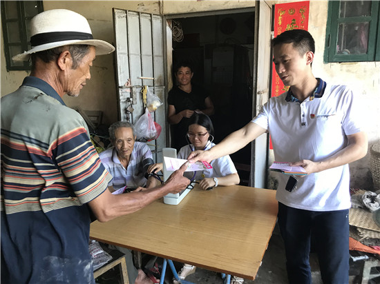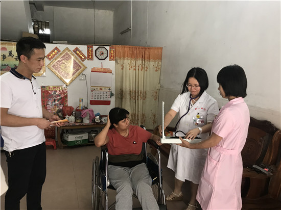 為深入貫徹黨的十九大精神和習近平總書記重要講話精神,扎實推進落實“百醫牽百村”活動方案,全力打贏扶貧攻堅戰,近日,三合鎮扶貧辦與掛點機構臺山市婦幼保健院聯合組織開展“百醫牽百村”送醫下鄉活動。三合鎮扶貧干部呂雁玲、伍海山和臺山市婦幼保健院梁亮醫生帶領醫療服務隊到掛鉤村貧困戶上門義診,對久病臥床、行動不便的貧困戶提供有針對性的診治服務和健康咨詢服務,指導患者科學合理就醫用藥,并為扶貧對象建立健康檔案,提高貧困戶的健康素養。