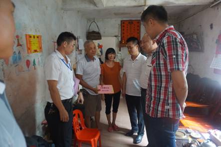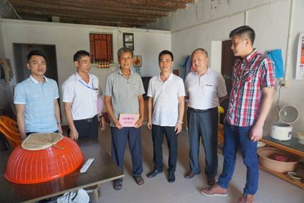 慰問組一行前往黃水嬌等6戶貧困戶家中走訪慰問,每到一戶貧困戶家中,慰問組與貧困戶耐心交流,關心了解貧困戶近期的身體狀況和生產生活情況,包括臺風有無造成經濟損失、有無人員受傷、家畜死亡等情況,并認真聽取他們的訴求。