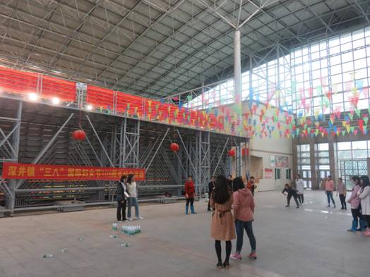 座談會結束后,鎮機關婦女干部到甄耀其體育中心參加趣味運動會。