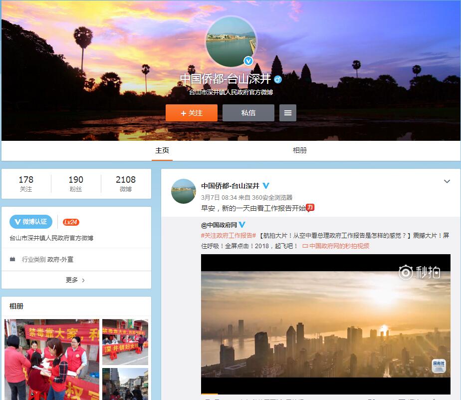 (三)擴寬信息公開發布渠道。開通深井鎮政府微博“中國僑都-臺山深井”和政府微信號“深井發布”,積極推進信息公開,發動鎮機關各辦(局)、中心和各部門單位、村居(委)會的工作人員、社會各界人士都添加鎮的政務微博和微信號,力爭讓政府的政務動態走進全鎮的每戶家庭。