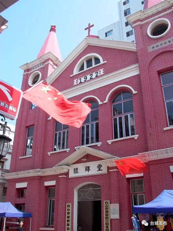 臺(tái)城禮拜堂位于臺(tái)城街道南塘社區(qū)臺(tái)西路186號(hào),建于中華民國(guó)十一年(1922年),坐東北向西南。高三層,寬13.70米,深20.78米,占地面積284.69平方米。臺(tái)城禮拜堂為仿哥特式建筑,紅磚外墻,兩側(cè)尖頂,正中頂端樹立“十”字架,兩面坡屋頂。外墻刻有“1922”字樣。門額牌匾刻有“禮拜堂”三字。室內(nèi)首層設(shè)有廳堂和辦公室,廳堂擺放著做禮拜用的座椅。該教堂融合了中西方建筑風(fēng)格,具有一定建筑藝術(shù)價(jià)值,是見證當(dāng)?shù)鼐用褡诮绦叛錾钭冞w的珍貴實(shí)物。2002年7月被臺(tái)山市人民政府公布為第二批文物保護(hù)單位。