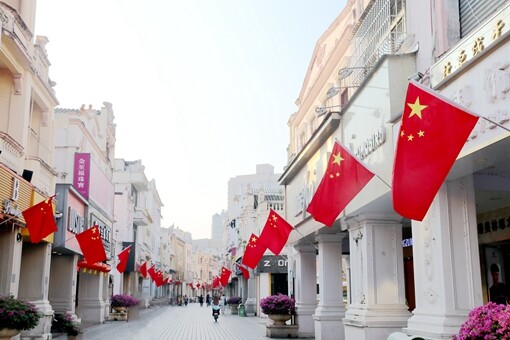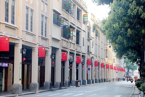 ▲陳宜禧路沿線懸掛國旗和中國結(jié)