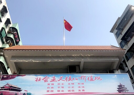 ▲臺(tái)城街道辦事處國旗飄揚(yáng)