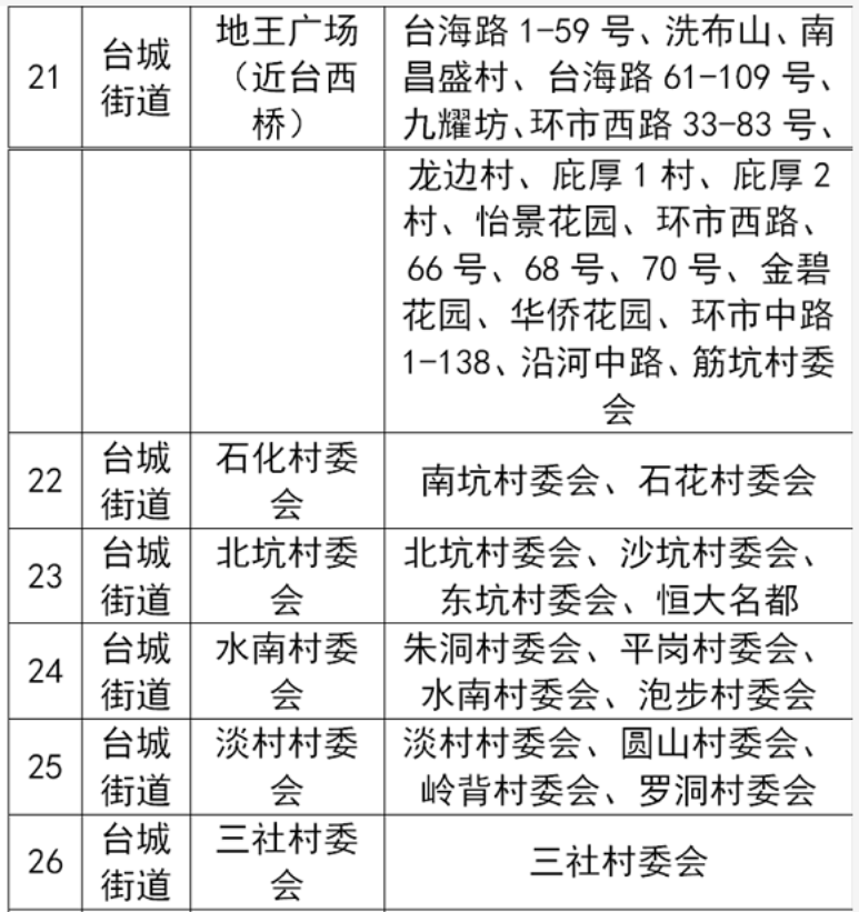 在此,臺城街道呼吁廣大市民積極主動配合本次核酸檢測,共筑全民免疫屏障。臺城街道新冠病毒核酸檢測采樣點安排表如下。
