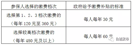 城鄉居保參保人個人繳費標準(元/人、年)有120、240、360、480、600、960、1200、1800、2400、3600等10個檔次。參保人可自主選擇檔次繳費,多繳多得,一個繳費年度內只能選擇其中一個檔次繳費。參保人按規定繳費的,享受政府補貼。