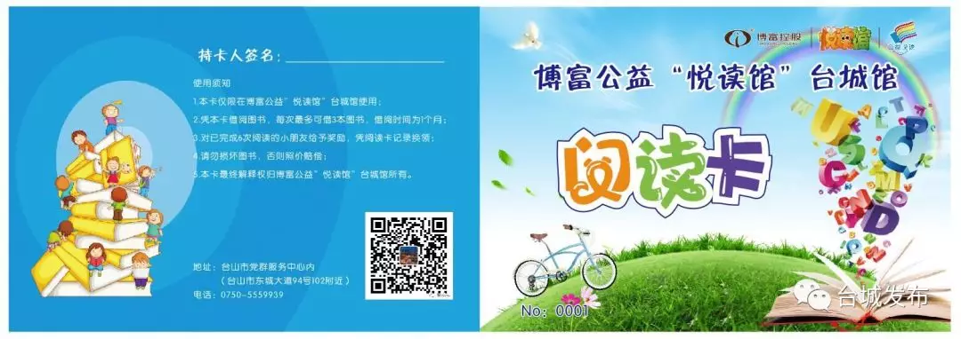 為激發廣大青少年兒童讀書學習的熱情,引領他們培養廣泛的閱讀興趣,讓讀書成為一種社區文化風尚,營造全民參與創文的濃厚氛圍,博富公益“悅讀館”臺城館為廣大青少年兒童免費贈送《閱讀卡》和《讀書心得記錄卡》。